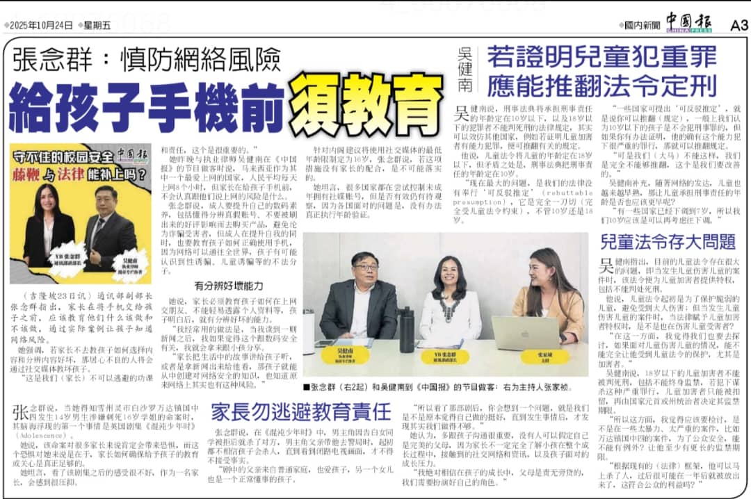 10岁以下孩童犯罪不判刑 | 吴健南建议探讨修正