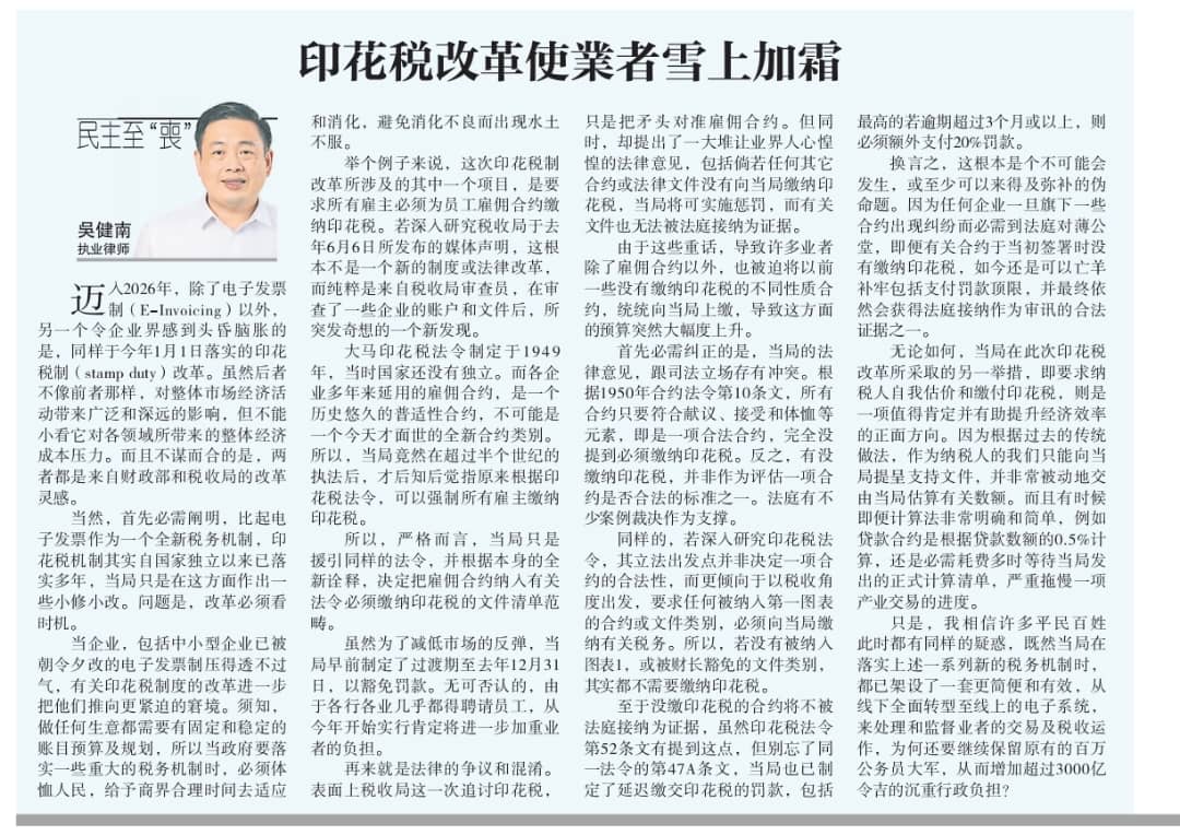 印花税改革使业者雪上加霜